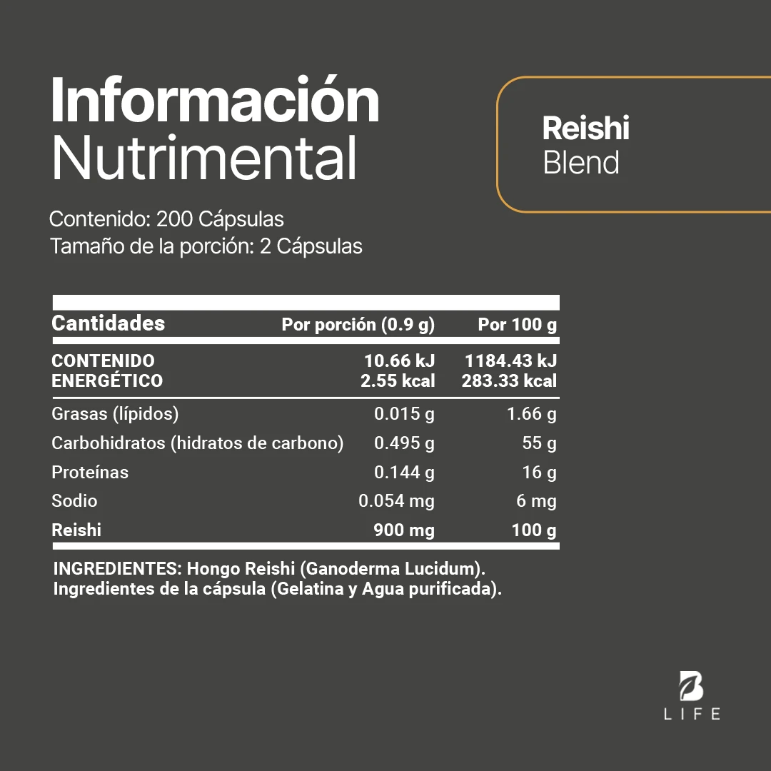 B Life | Reishi Blend | Formulación con Hongo Reishi | Adaptógeno | 200 cápsulas