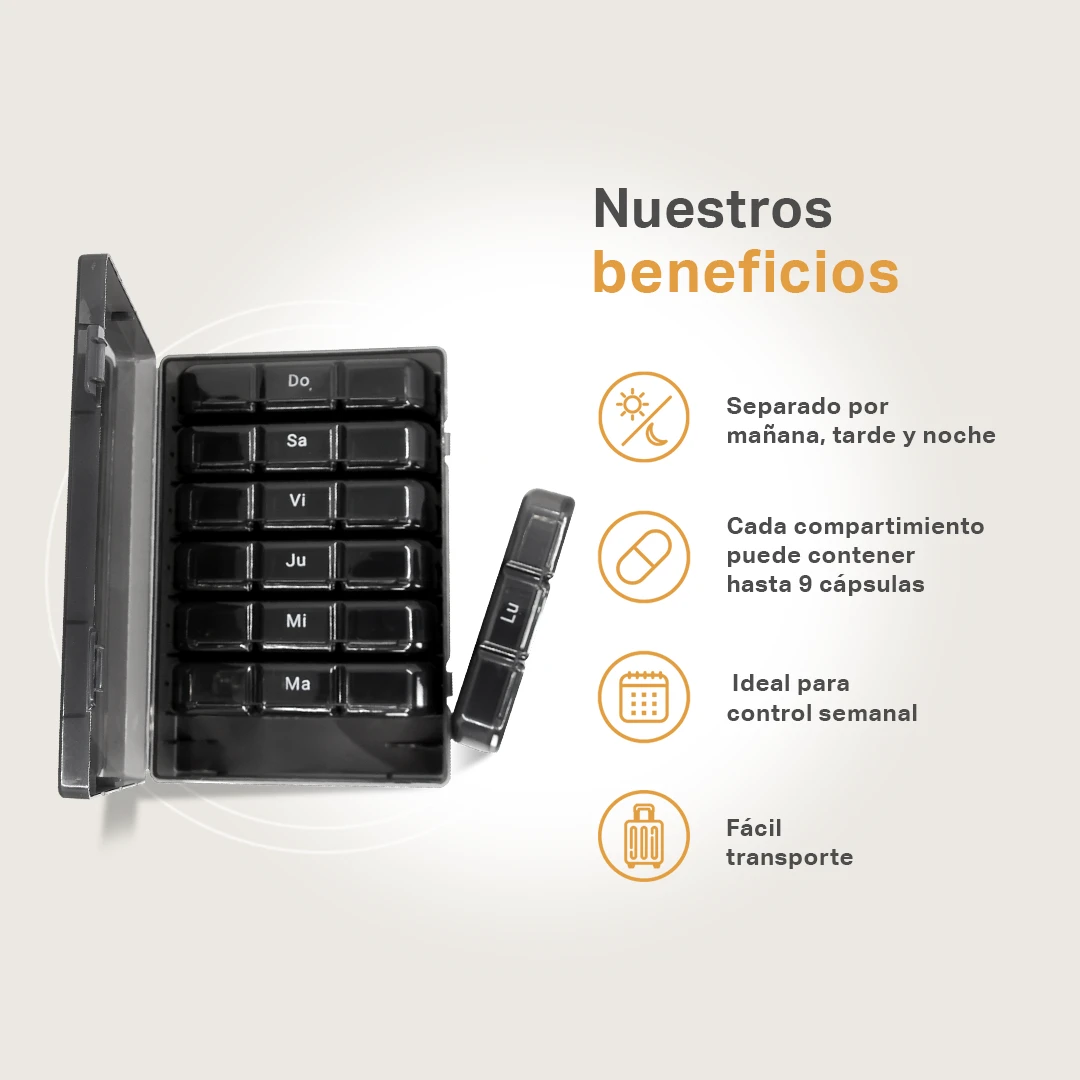 Perfecto para quienes siguen rutinas médicas estrictas, toman varios medicamentos al día o buscan una solución práctica y confiable para el manejo de sus cápsulas y tabletas.