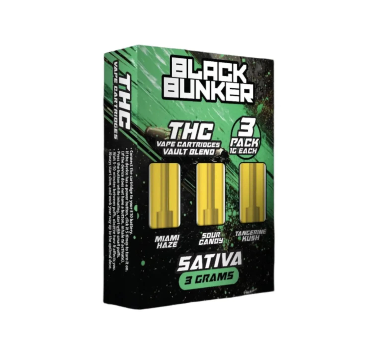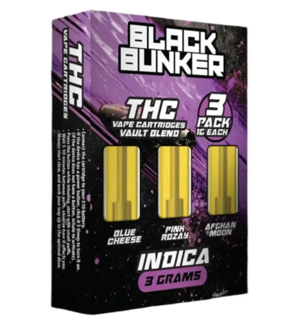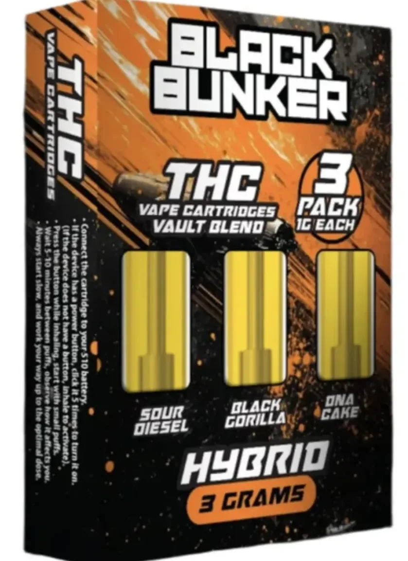 Paquete 3 PZS Cartuchos de WAX 1G C/U | “BLACK BUNKER” | THC variedad de sabores | 3 piezas