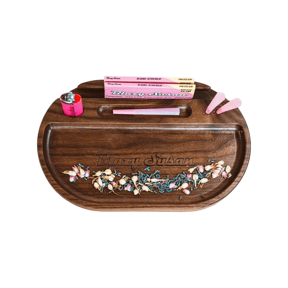Lleva tus sesiones a nuevas alturas con nuestra bandeja para enrollar más reciente: ¡la Charola Viajera de Madera Blazy Susan! Esta charola compacta vuela contigo a cualquier lugar y cabe fácilmente en tu bolso cuando estás en movimiento. ¡La Charola pequeña también encaja perfectamente en el centro de tu Blazy Susan! Con una ranura para tu encendedor y un gran soporte para conos, tendrás todo lo que necesitas para enrollar sobre la marcha.