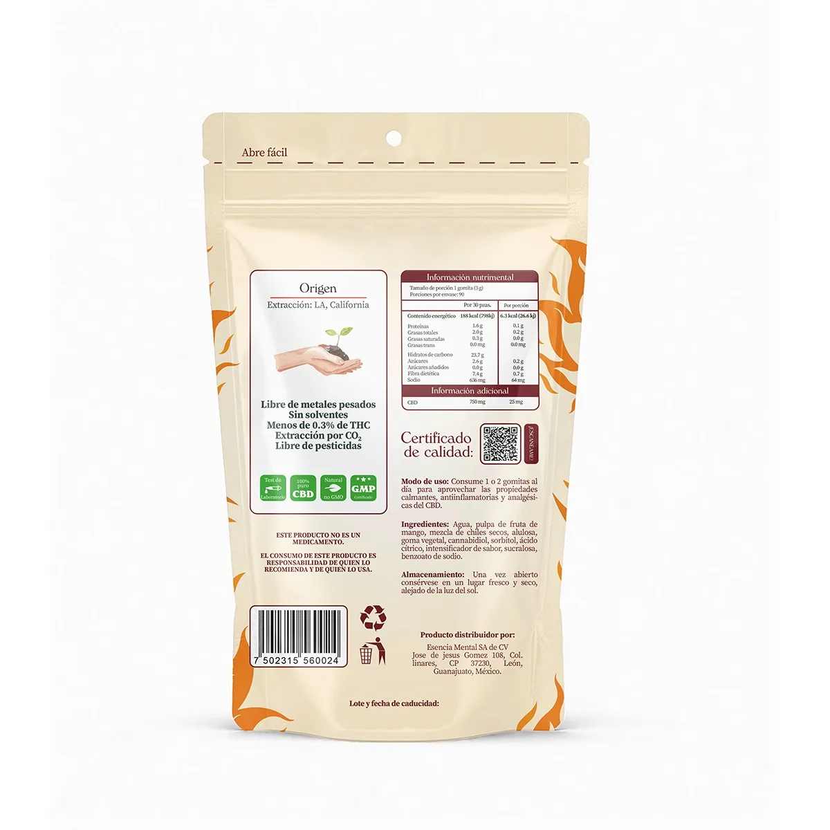Gomitas de CBD sabor mango con chile | 2250 mg | Esencia Mental | 90 piezas