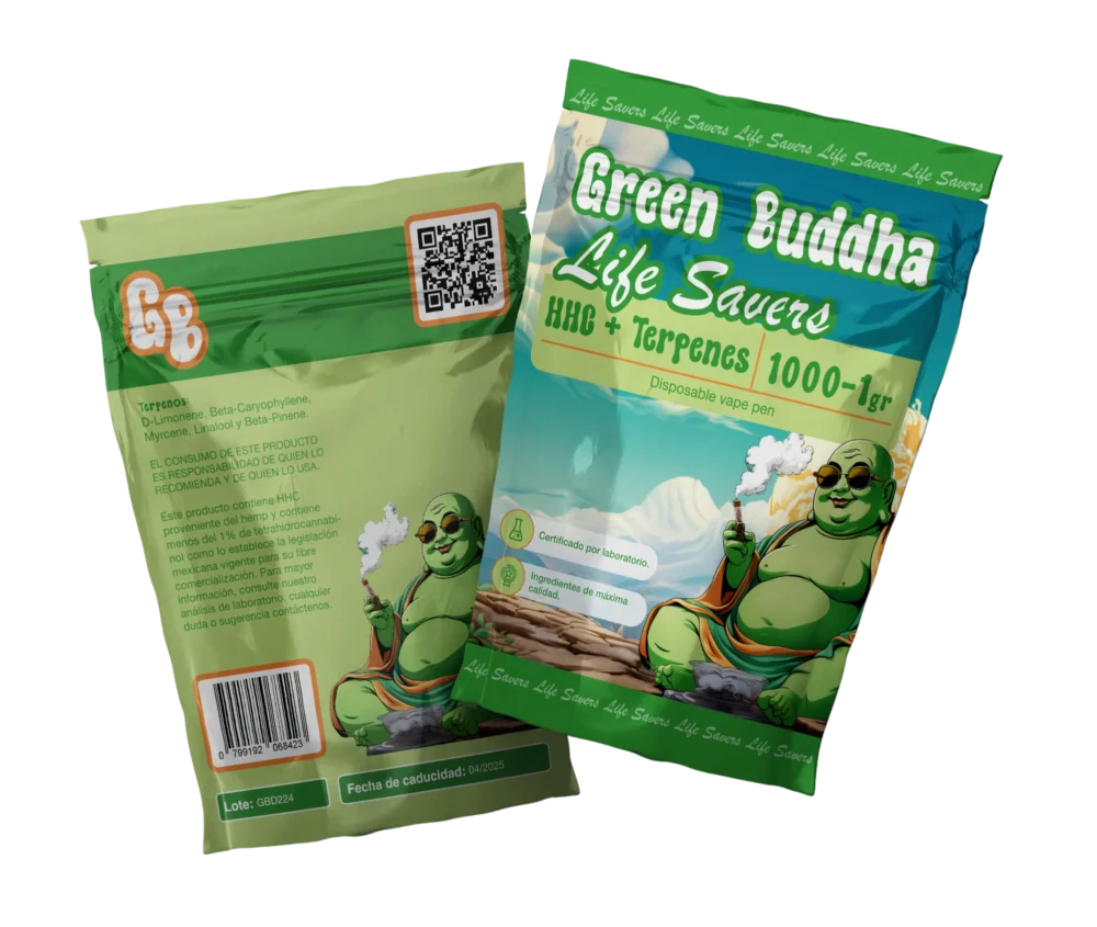 Green Buddha | Vape Desechable HHC 1000 mg | 1 ml | Pluma de Wax | Sabor Life Savers