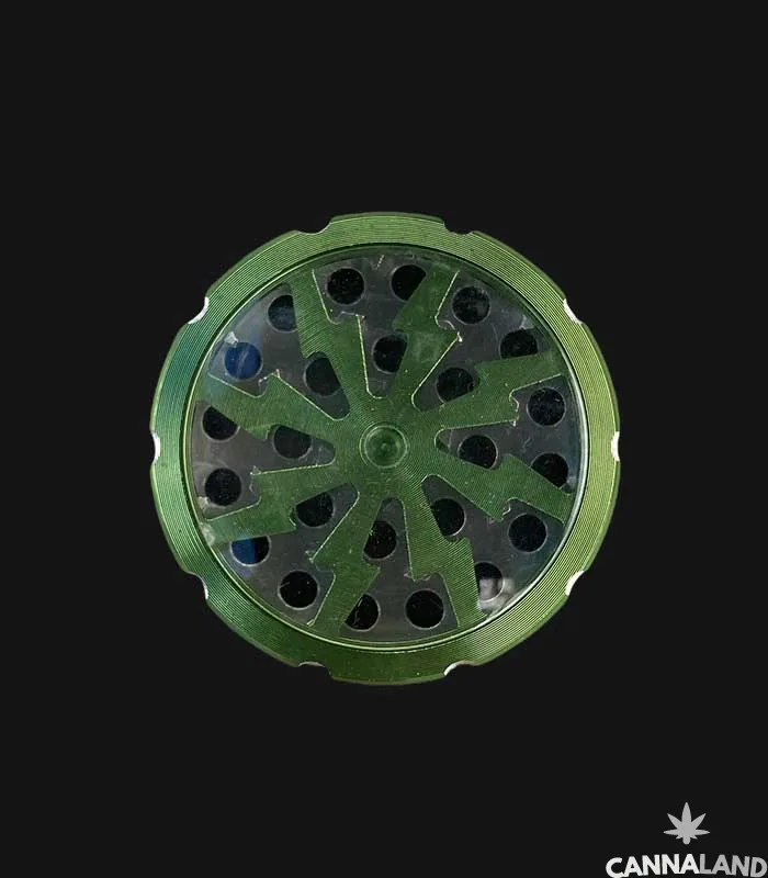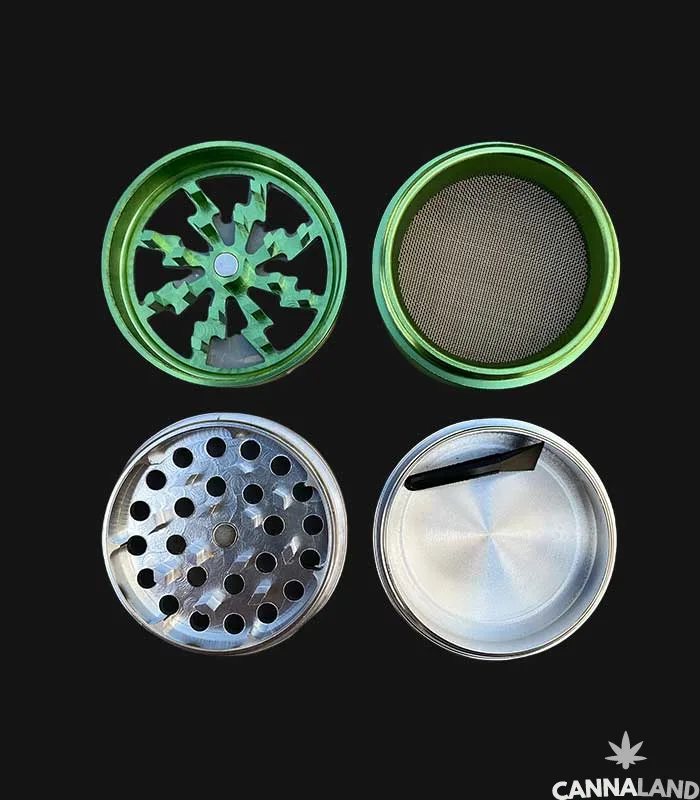 Grinder de metal color verde y plata.