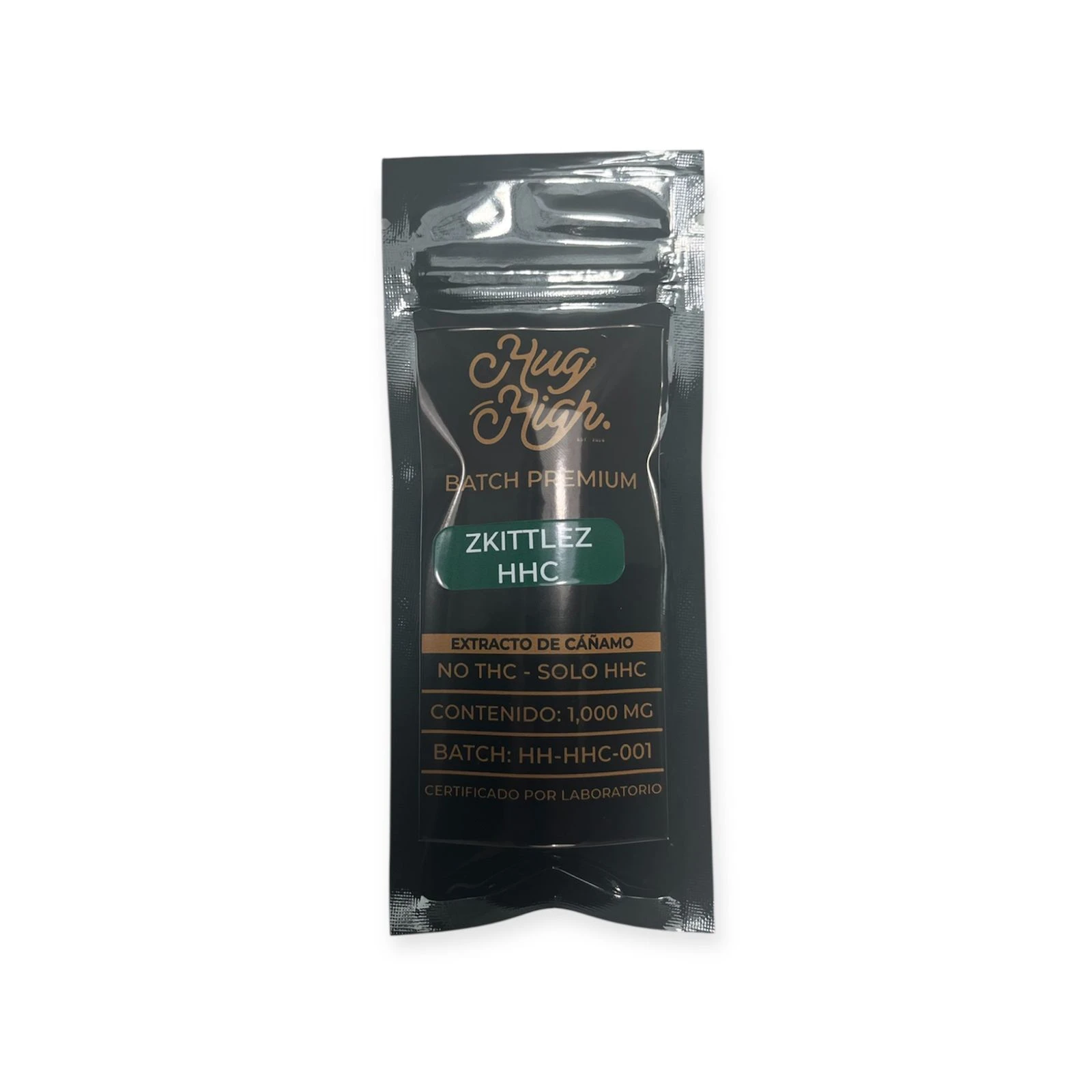 Zkittlez HHC de HUG HIGH trae 1000 mg de destilado premium con terpenos inspirados en el perfil live resin de esta cepa clásica, famosa por su sabor a fruta dulce y su efecto fresco, claro y energizante.
