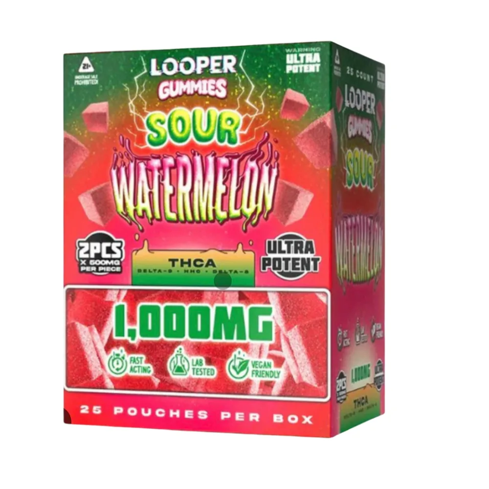 Las gomitas Looper de THCA de 500 mg ofrecen una forma deliciosa y potente de disfrutar de los beneficios del THCA. Cada gomita contiene 500 mg de THCA de alta calidad, lo que las convierte en una excelente opción para quienes buscan una experiencia comestible sabrosa y eficaz.