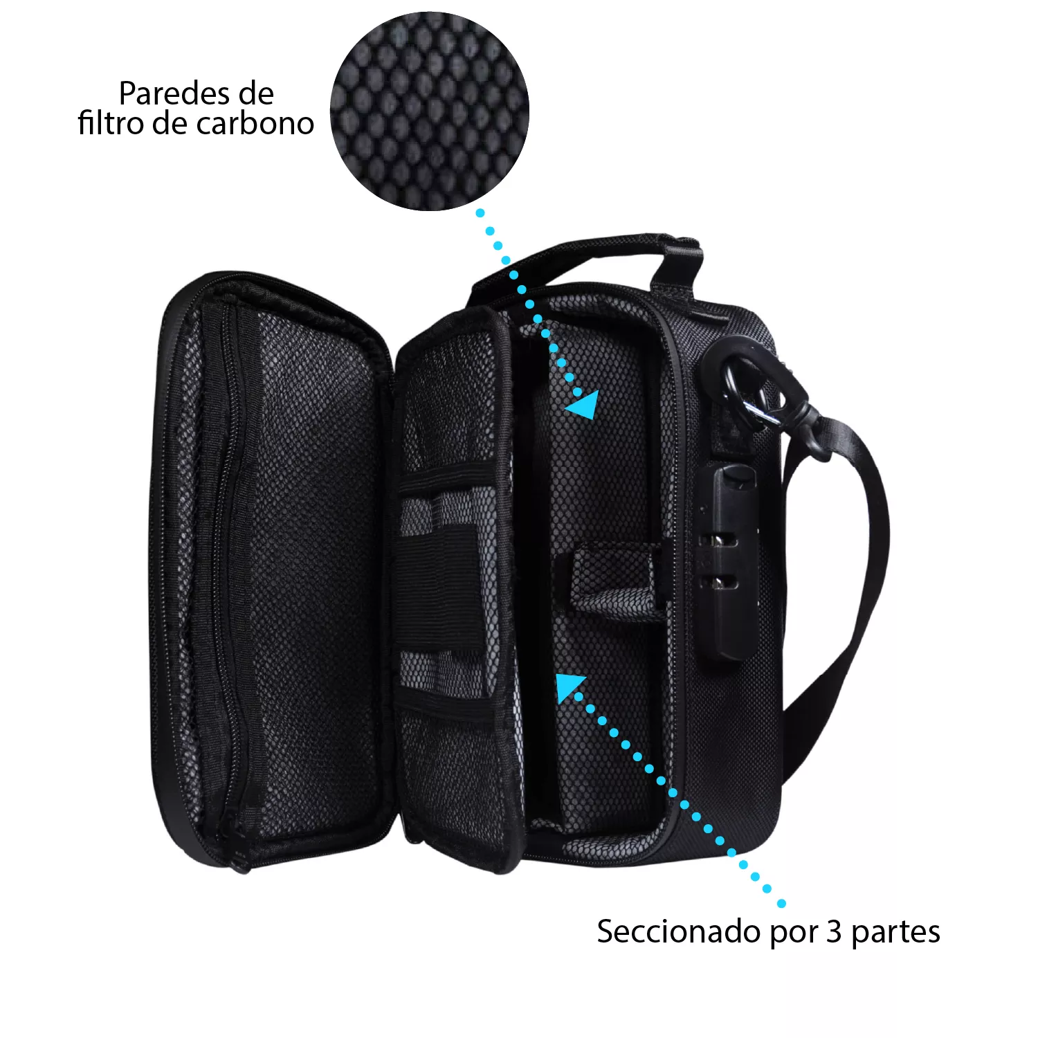 Al igual que el resto de los estuches y bolsos de la línea OZeta, la Lonchera cuenta con un sistema de control de olores mediante filtros de carbón activado y un cierre hermético. Con este estuche, podrás mantener tus pertenencias discretas y evitar olores molestos.