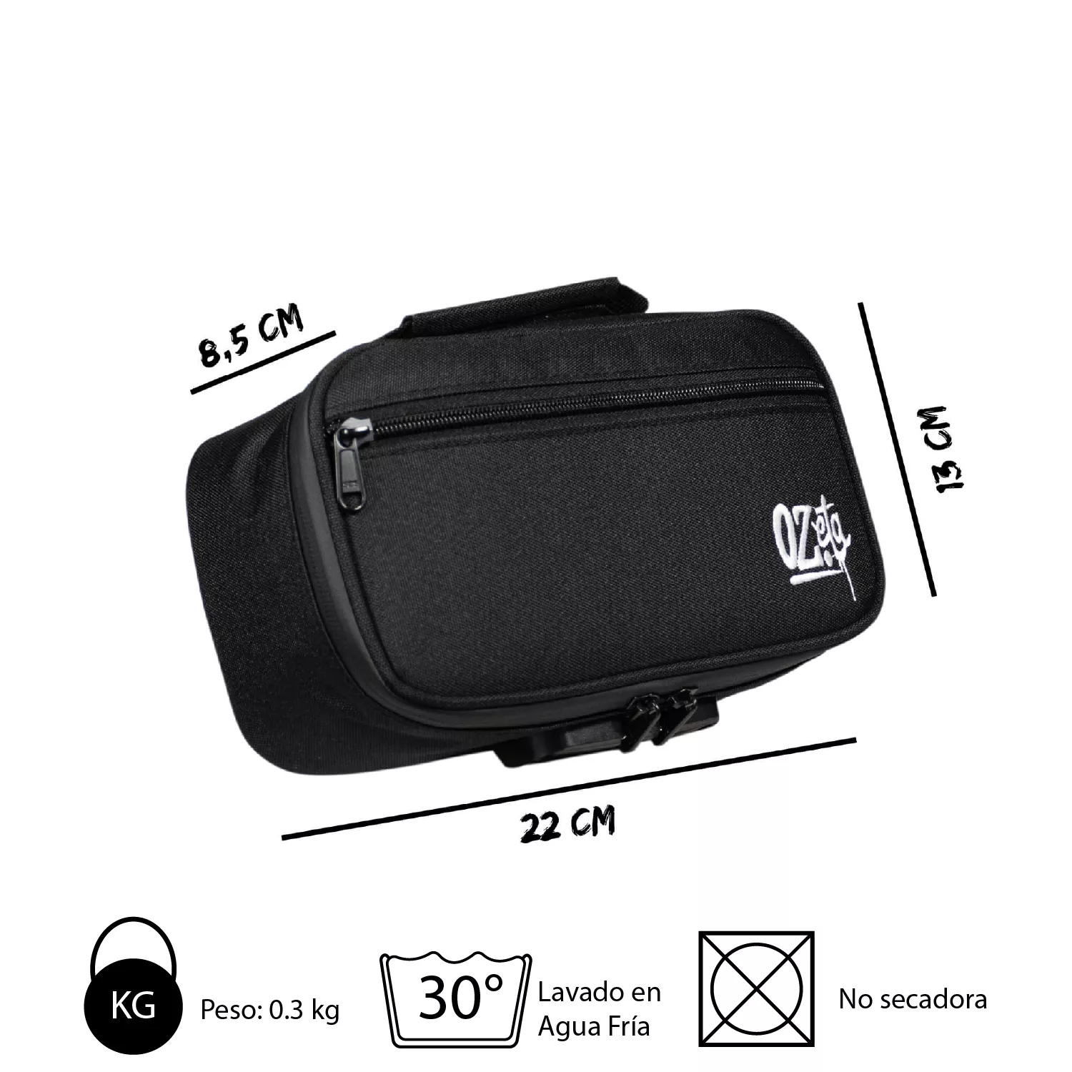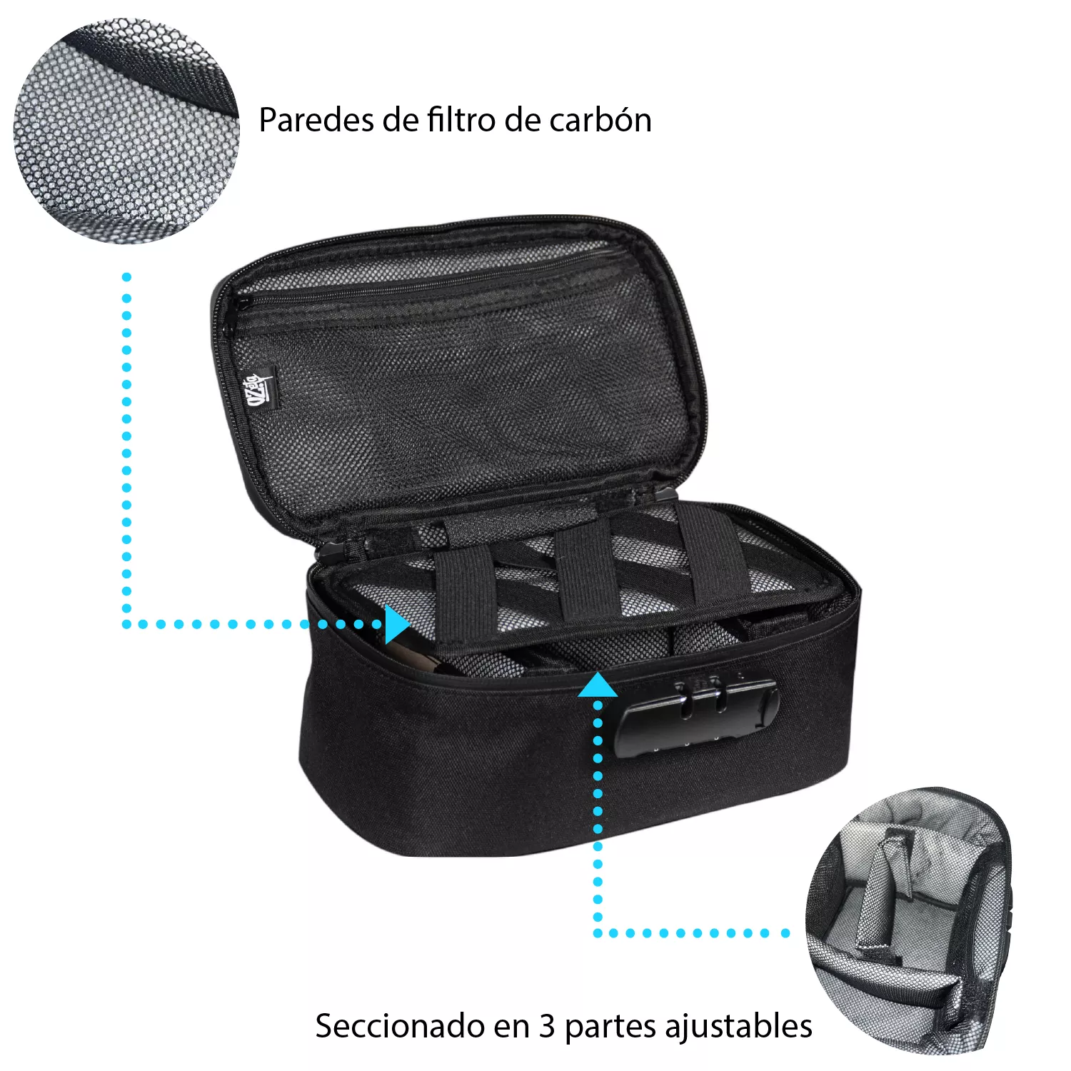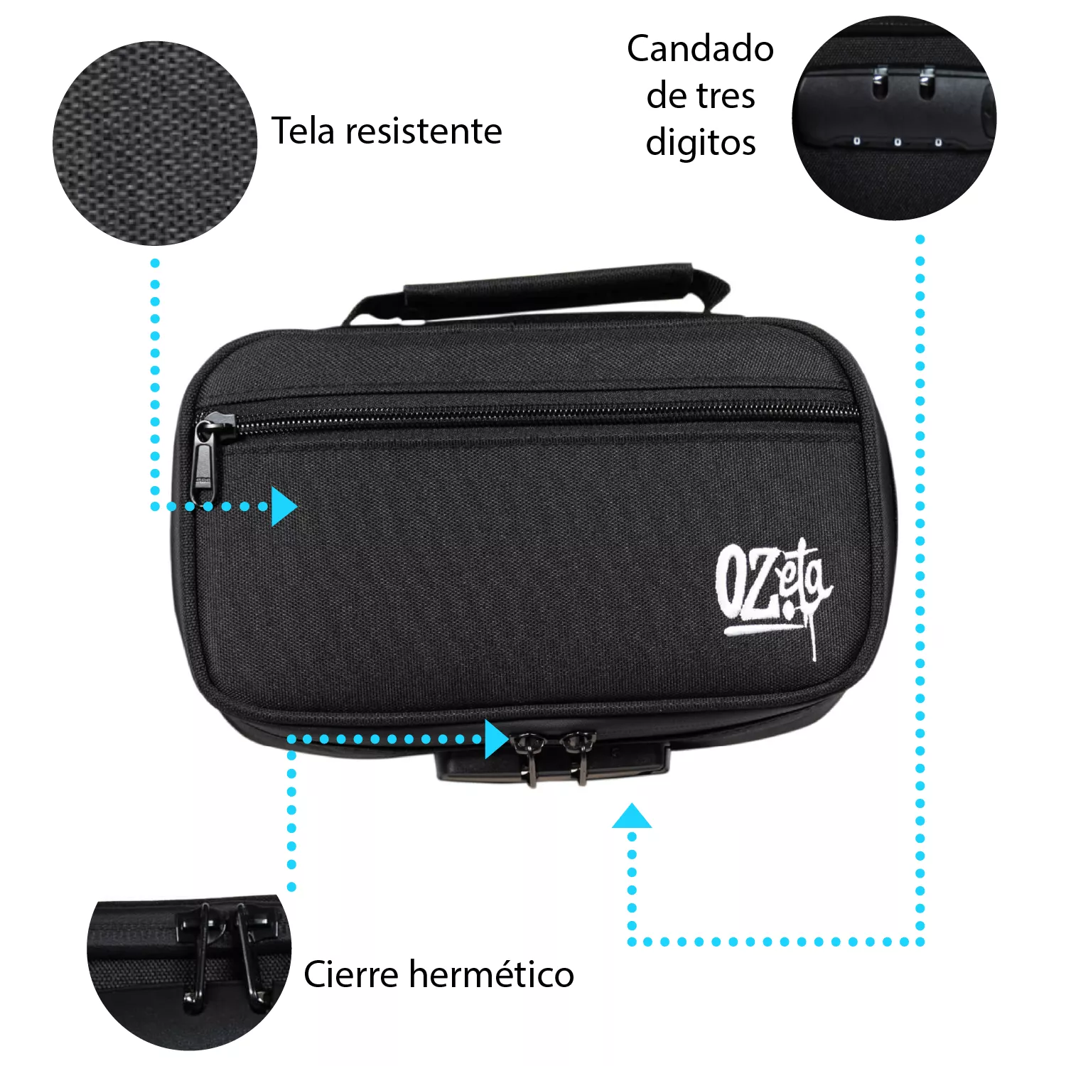 Al igual que el resto de los estuches y bolsos de la línea OZeta, este cuenta con un sistema de control de olores mediante filtros de carbón activado y un cierre hermético. Con este estuche, podrás mantener tus pertenencias discretas y evitar olores molestos.