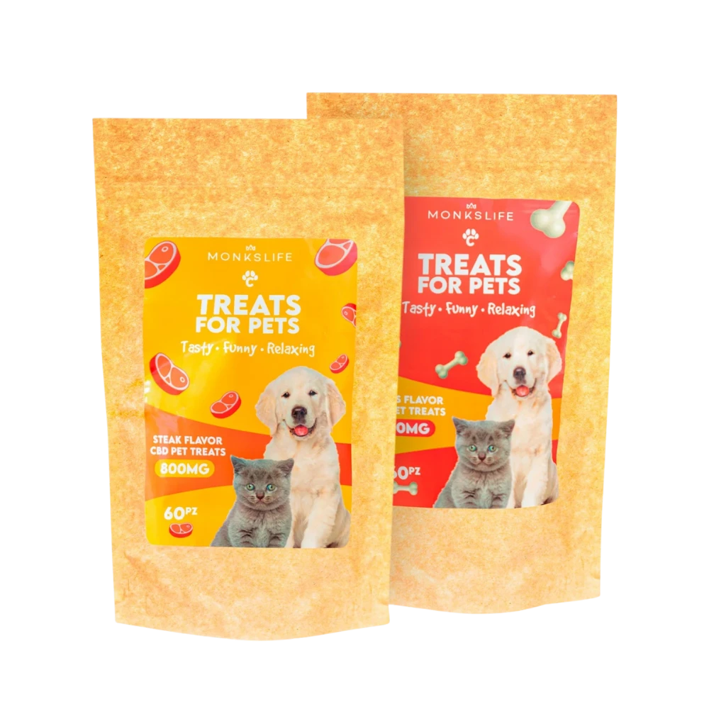 Premios CBD Mascotas Monkslife | Ansiedad y Estrés | 800mg sabor bistec | 60pz | CBD para perros y gatos