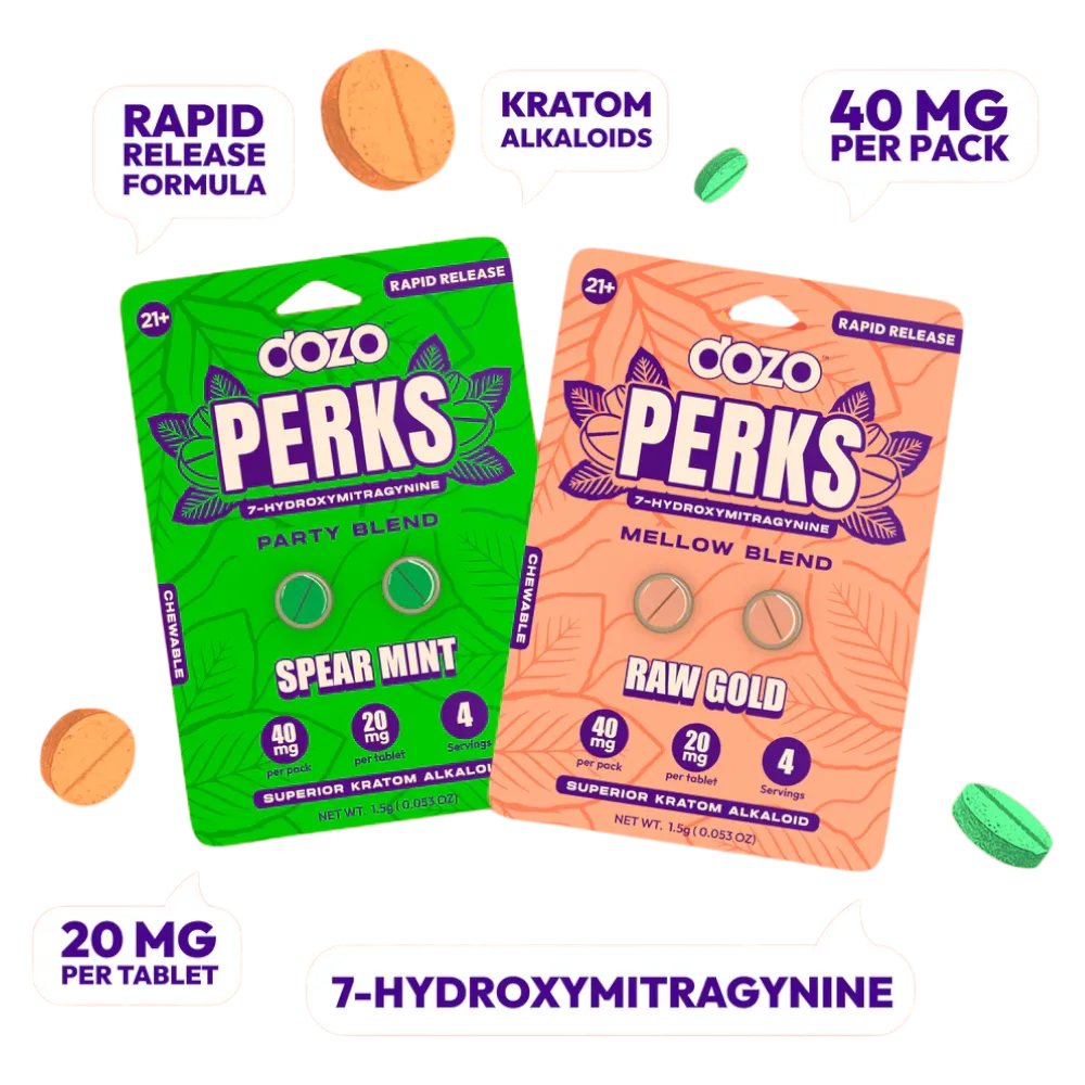 Tabletas PERKS DOZO Kratom | HIDROXIMITRAGININA – 20 gr por cápsula | 2 piezas